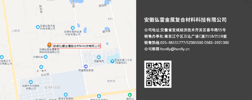 安徽弘雷金屬復合材料科技有限公司成立于2013年5月,坐落于宣紙之鄉—安徽省宣城市,專業從事各類金屬爆炸復合材料研發、生產、銷售和咨詢。注冊資本伍仟萬元,自有產權廠區6萬余平方米(約90畝),建有自有產權的野外爆炸作業場地及設施,具備年產四萬噸以上能力。...